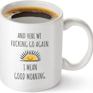 Here We Fucking Go Again I Mean Good Morning - Funny Birthday or Christmas Mom Gift - Sarcastic Gag Presents For Her Women Mother - 11 oz Coffee Mug Tea Cup White |