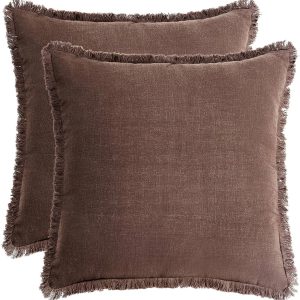 Pack of 2 Linen Pillow Covers with Tassels Fringed Decorative Rustic Natural Throw Pillowcase Cushion for Couch Sofa Bedroom 24 x 24-Inch Brown |