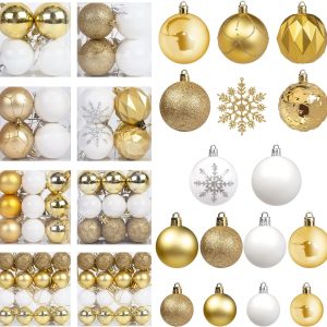112PCS Christmas Tree Ball Set, Christmas Ball Ornaments Glitter Shatterproof Baubles Gold White for Xmas Tree Wreath Christmas Party Wedding |