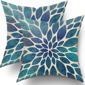 aportt Spring Teal Dahlia Pillow Covers 18X18 in Navy Blue Teal Floral Couch Pillow Cases Modern Abstract Throw Pillows Set of 2 Summer Home Decor for Living Room Bedroom Bed Cushion Outdoor |