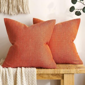 Pack of 2 Fall Decorative Burlap Linen Throw Pillow Covers Modern Farmhouse Pillowcase Rustic Woven Textured Cushion Cover for Sofa Couch Bed 18x18 Inch Burnt Orange |