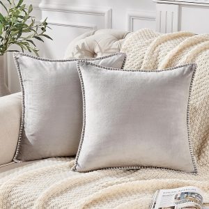Decorative Soft Velvet Throw Pillow Cover 22"x22" Pack of 2 Square Cushion Covers, Farmhouse Fall Pillowcase for Sofa Couch Living Room Bedroom Accent Chair Home Decor Car (55x55cm) Light Grey |